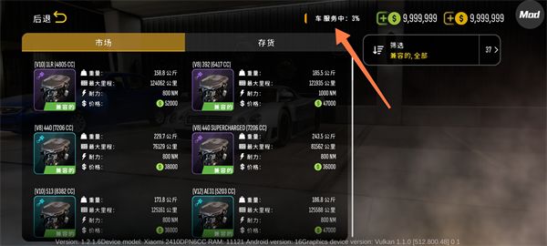 4、进入【发动机市场】浏览可选发动机型号。