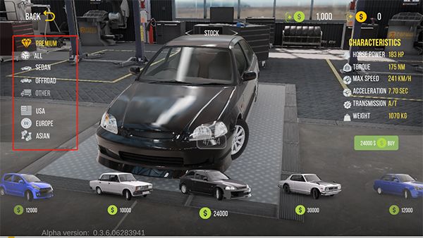 1、打开手动挡停车场2游戏后,可先利用无限金币自由购买心仪的跑车。