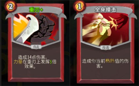 2、如果你拿到核心牌,那么你就需要拿爆发牌,也就是跟力量核心联动的《重刃》,跟格挡联动的《全身撞击》