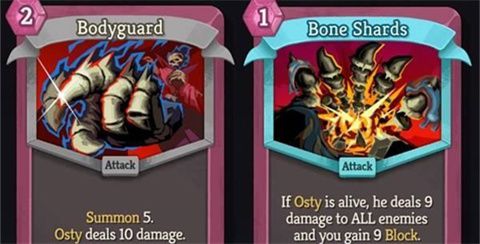碎骨:如果奥斯提存活,则其对所有敌人造成9点伤害且你获得9点格挡。奥斯提死亡。