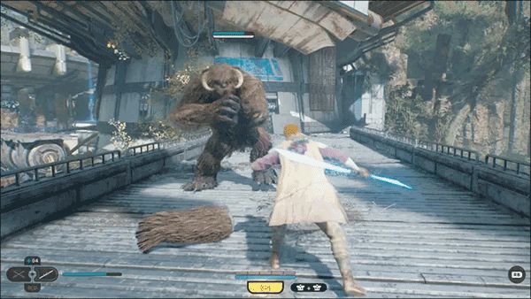 首先,在本作故事的开头,卡尔就已经能熟练使用光剑的两种形态--单剑和双刃。同时,在控制原力方面,一些前作中后期才能学到的能力,这次在故事开头就免费送给了玩家。如果你恰好在体验本作前,补完了《星球大战 绝地:陨落的武士团》,那上手本作的过程也会变得非常顺畅。