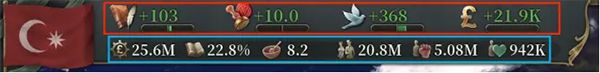 1、 行政力:通过建筑政府行政机构提升。消耗在人口,整合新获得的土地上以及海陆两军的军官