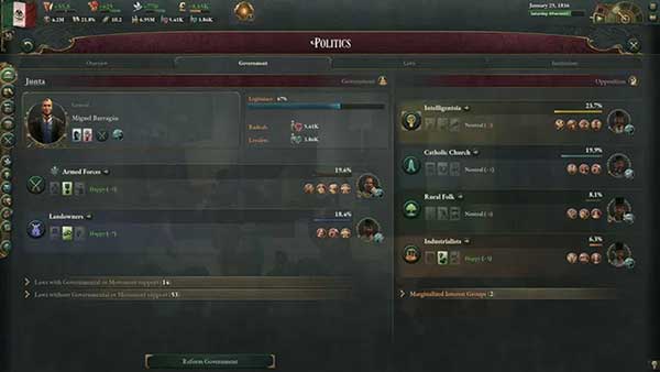 政治是Victoria 3的核心,所有主要功能都或多或少与构成游戏政治核心的人口与利益团体有所关联。