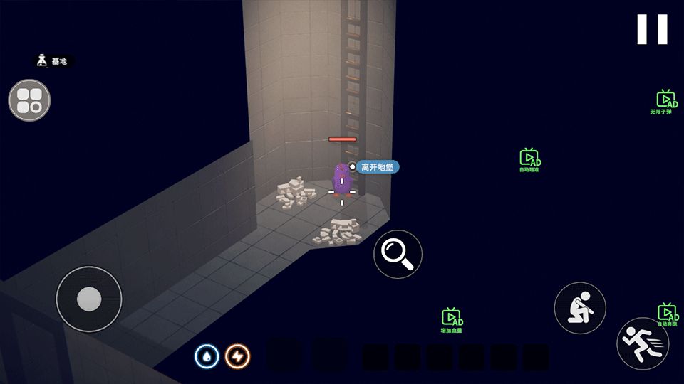 2、玩家通过左下角摇杆操控觉得的移动,右边为奔跑和蹲下