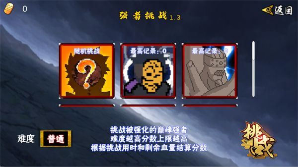 1、打开像素火影次世代手游进入主界面,可选择强者挑战、无尽试炼、忍界大战、忍术对战以及演练(人机对战)等多种模式,点击即可快速开启战斗体验。