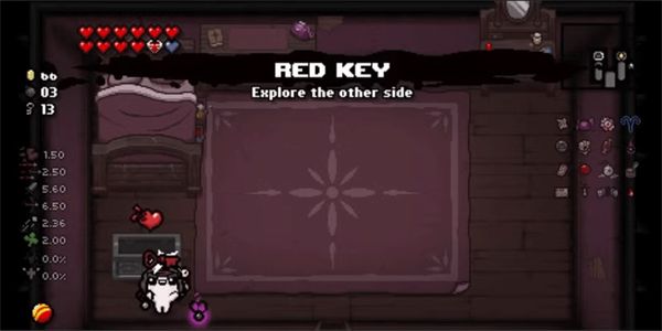 第一次打开宝箱时,你总是会获得一把红钥匙作为奖励。捡到这个可以解锁红钥匙,用于其他游戏,作为其他有用物品的使用。这个道具是解锁受污染者角色的关键。不过你也可以选择裂钥或该隐之魂,这些可以在后续游戏中找到。
