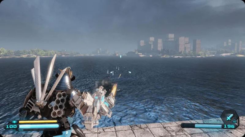 经过桥底跳落到下层运河,可以摁下左摇杆进行变形,左摇杆的变形会变成一辆能够开炮并且多角度行驶的车辆,如果按住LT键能够变成一台类似奥迪概念车A9模样的跑车(这种模式就纯粹地奔跑)。