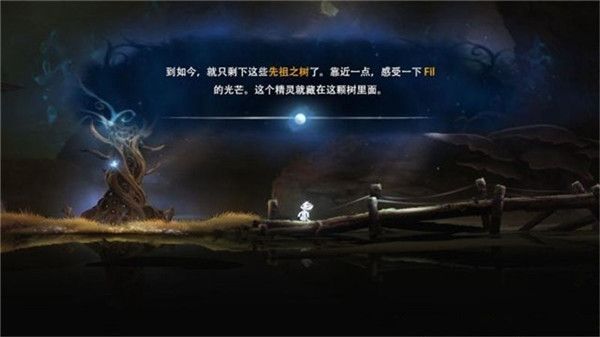 多年以前,精灵之树曾大声叫说要找到奥日。但那时赛安他们遭受敌人的袭击和追杀,而身负重伤。到如今,就剩下这些先祖之树了。靠近一点,感受一下它的光芒。这个精灵就藏在这枯树里面。