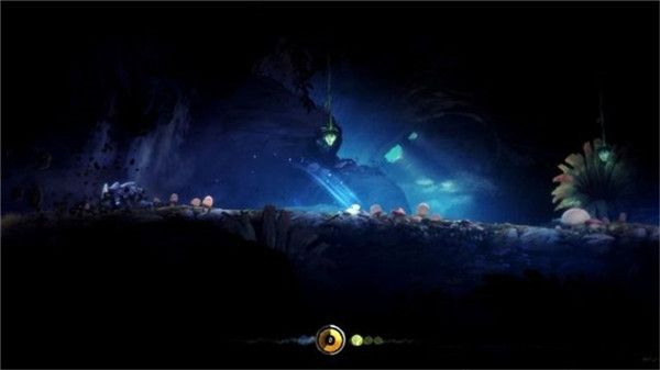 1、奥日醒来后发现周围的花儿都发出光芒点亮了整片的森林,而此时游戏会进行第一次的自动保存。