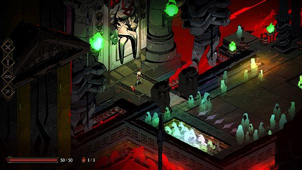 Supergiant 各类游戏内容丰富、大气磅礴以及游戏和故事叙述相结合的特有风格,在这款游戏中表现得淋漓尽致:壮观的手绘冥界环境和令人胆寒的原创配乐,营造冥界阴森恐怖的氛围,让人身临其境。