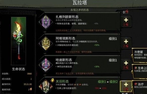 2、关羽形态,解锁至少5种武器的非初始形态,武器形态在解锁全6把武器后再死回家一次解锁。在圣殿承包商处购买小命运清单。需要阿喀琉斯两段对话,一段普通和一段优先。