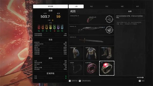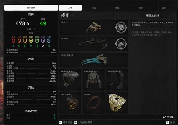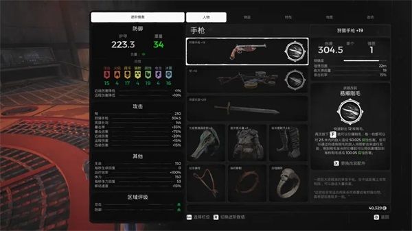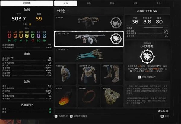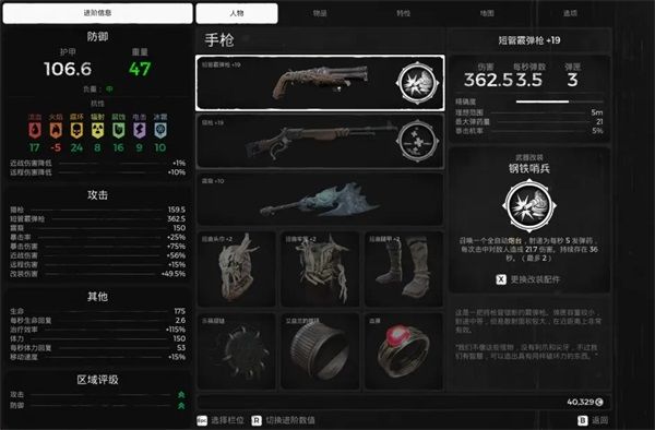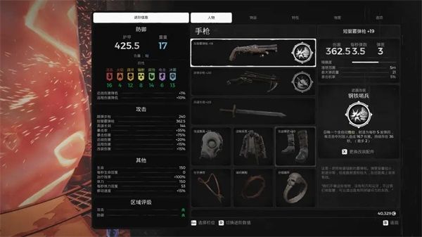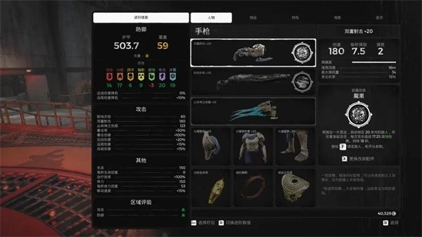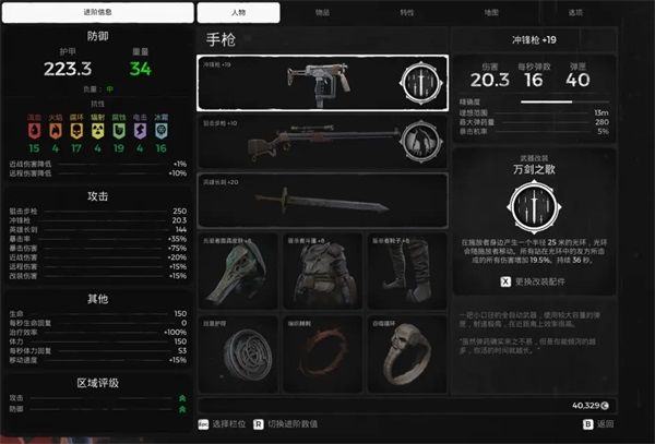 人物栏显示了角色目前的武器和装备。