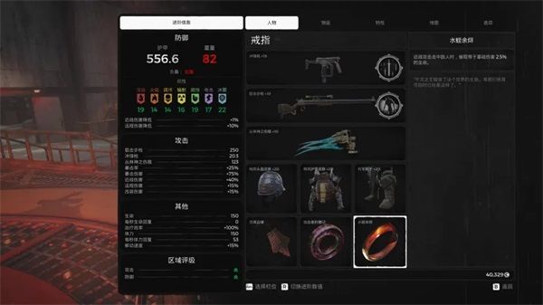副武器随便带【改装带魔潮就好】项链没有放射性余烬可以换成医疗神符,戒指可以赌徒换猎人【根据boss来决定】,这套伤害主要是魔潮的腐蚀能力加上射线步枪的沙漠气息的伤害,而且优先叠满自身光耀的buff,伤害满分。