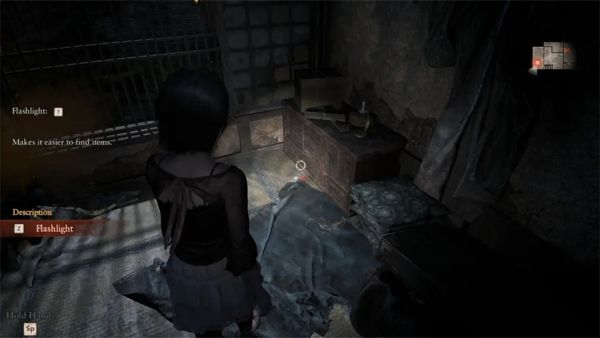 捡起手电筒后,你会在柜子附近的地板上发现另一件物品。拿起它来收集《女人笔记本1》。