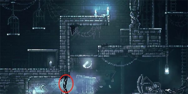 12、爬上吊灯右边的平台,柱子会断裂,把之前推断的柱子推过来修复平台,从平台往左跳过去,获得钥匙。