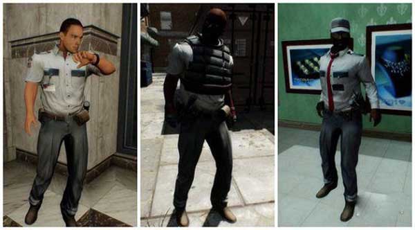 这就是为什么不管回答用的什么口音什么形式说的什么,操作员都会相信的原因。而且他们最大的特点就是敬业,就算你不带上面具,从他们身边蹭一下也会被发现的(毕竟我们是惯犯)而且看见你打碎玻璃或者杀 人放火之类的事情也会毫不犹豫的拉响警报,当然有时候也会变得有点小聋瞎。潜入中如此恶心,但突突突中的伤害也不是闹着玩的,不过由于身板弱,可以一枪带走。(注:所有保安都持有警 棍,虽然我根本看不见哪里有,反正有就对了)。