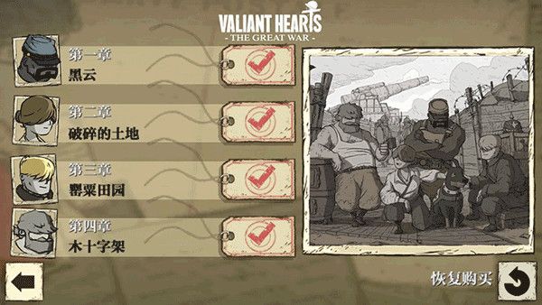 勇敢的心世界大战手机中文完整版是一款大型横版过关游戏,该作将从5个角色来描绘,虽然他们来自不同的国家,不过有一个共同的道路,那就是让一位年轻的德军士兵与他失去的爱重聚,虽然战争很危险,但是他们还有一支忠犬,除了帮助战斗,还能一起来解谜。卡通风格的角色个性极为鲜明,过目难忘,角色的动作表现有着非常充足的帧数,处处都可以感觉到制作组对于游戏的用心,整个游戏的过程之中,就像是看一部制作精良的动画片,对于任何玩家来说,这样的画面表现是非常容易接受的。游戏对战争的刻画可以说非常的深入,制作组走访了很多当时战场的遗迹以及老兵的后人,了解到了很多关于那场战争的故事并且还原在其中,对当时的社会环境也有着很好的刻画。官方给游戏定位为互动式的视觉读物,恰如宣传的结合了探索、动作、解密元素的冒险类漫画,主体为漫画,所以请不要过多的期待动作打斗射击,谜题跟战斗都是点到为止,毫不繁冗。