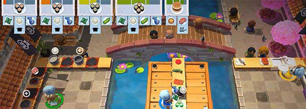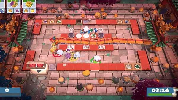 穿过传送器,跨过移动平台,为了节约时间你们甚至要在不断变化移动的厨房中互相投递食材。有的厨房甚至会将你的厨师甩到其他地方。