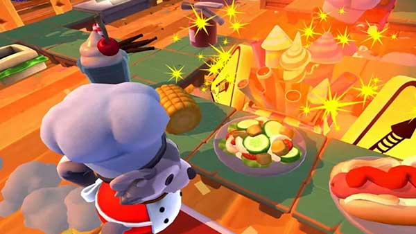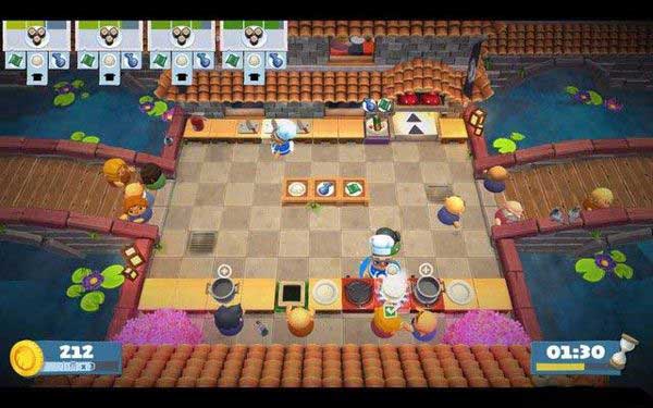此外,胡闹厨房2还新增了一个“投掷”的机制,玩家可以控制角色投掷食材给远方的另一位玩家,或者直接扔到盘子、锅子等容器里快速装入,虽然有些时候会显得有些手忙脚乱,无法精准投掷,但在多人游玩的时候添加了更多的趣味。