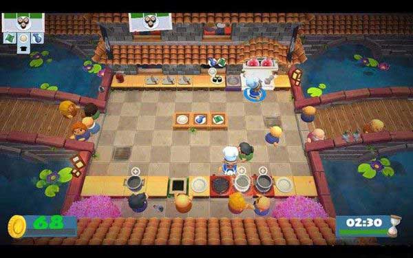 在不断变化移动的厨房中互相投递食材。有的厨房甚至会将你的厨师甩到其他地方。