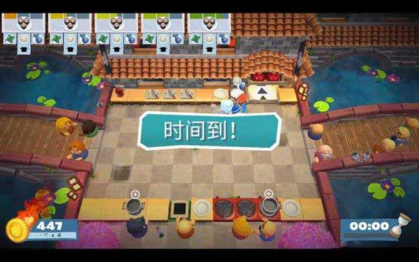 而且,在游戏中,玩家将会扮演一名扮演厨师,你需要在尽可能在一定的时间内完成系统给定的菜肴订单,通常要做的就是从仓库拿取食材,通过切碎、揉捏等方式进行加工,之后进行加热,再依照所给出的菜单,将不同的素材拼凑成对应菜单的菜品,最后便可以上菜了,当然,玩家还需要合理把控角色置换时间,在规定的时间内完成订单。