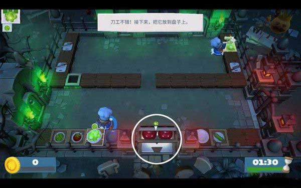 5、还要注意,如果你是一个人玩的话,需要控制两个角色,就像左右手互博一样,需要分工明确才行。具体怎么分工呢,就是一个人专门负责切菜。一个人专门负责运输。