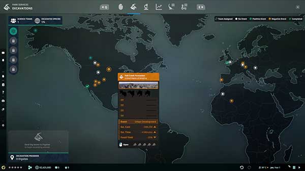 玩家可以从遗传材料中复活各类史前动物,如猛犸象、剑齿虎和恐龙等。管理动物的生活环境,确保它们的饲养、繁殖和健康。