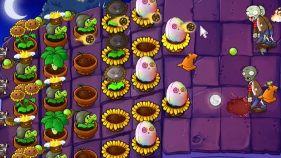 7、期间不断补充攻击型植物,后期大家可将全部向日葵替换成机械豌豆射手。