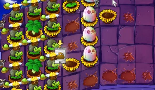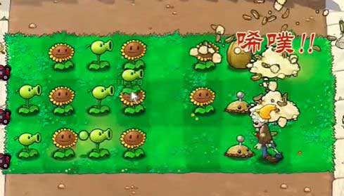 5、在左侧第五列种植一列豌豆射手,在豌豆射手中间补充多个向日葵。
