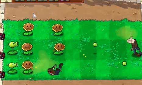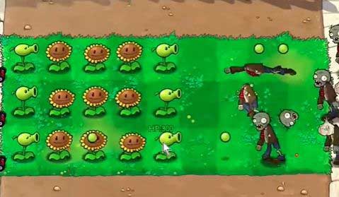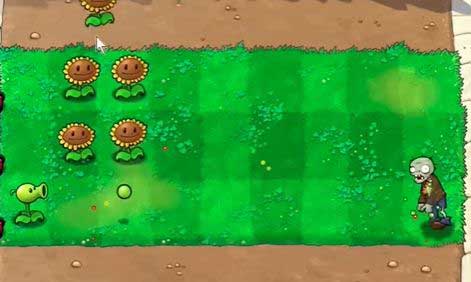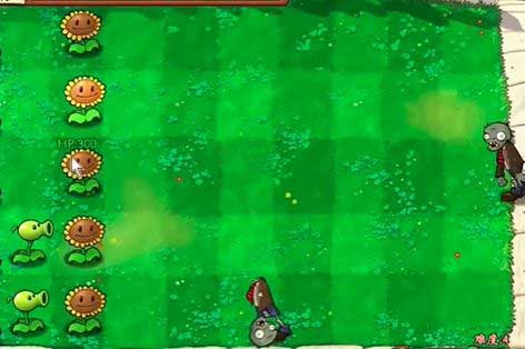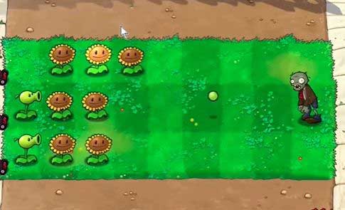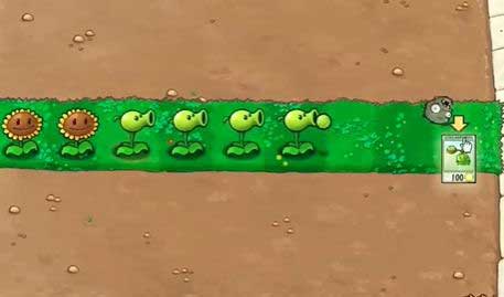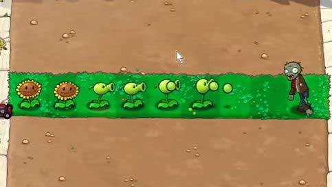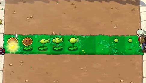4、根据僵尸出现的位置,在左侧种植豌豆射手。