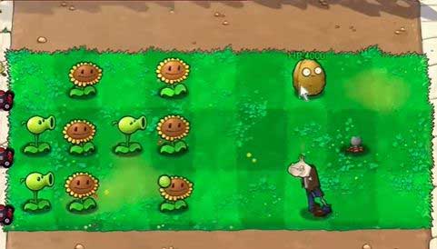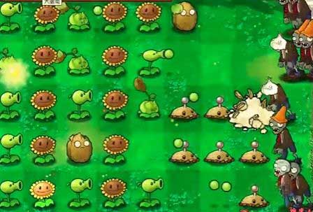 4、然后在右侧种植一个土豆雷,在上方种植一个坚果。