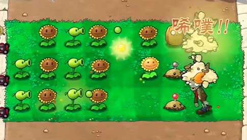 2、先在左侧种植三个向日葵吗,提升种植植物的速度。