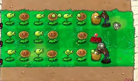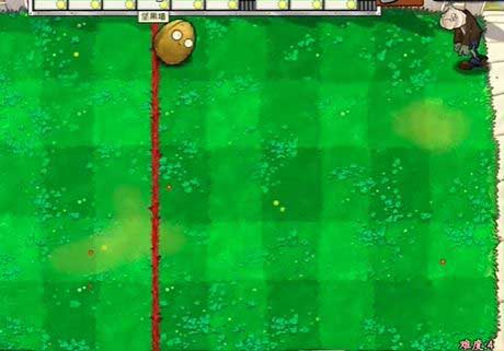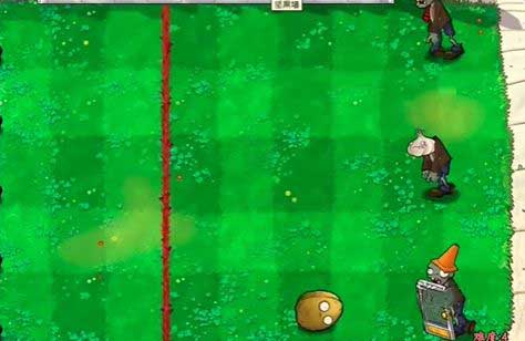3、根据僵尸的分布,在红线左侧种植坚果进行攻击。