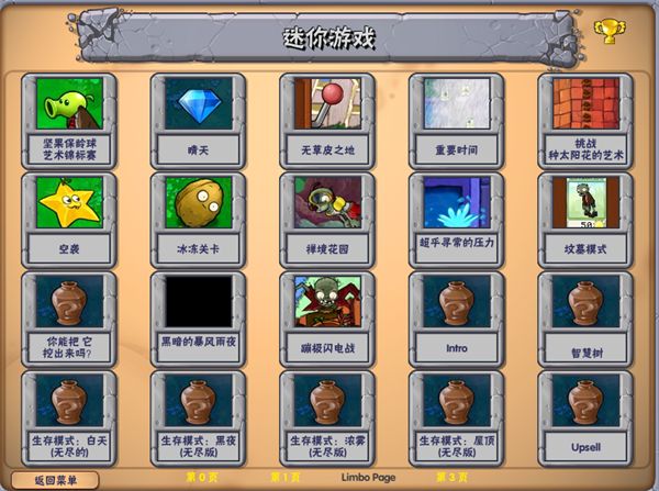 在左上角“额外”中可以发现植物大战僵尸所有经典关卡都在里面,可不要小巧里面的关卡都是发生了巨大的改变!
