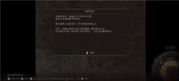对于很多“路痴”玩家而言,本作的一大福音就是终于有了明确的地图系统。玩家在地图上可以查看已经激活的 「赐福」、对话过的NPC以及重要的据点等等。并且能够通过地图直接在「赐福」之间进行传送。