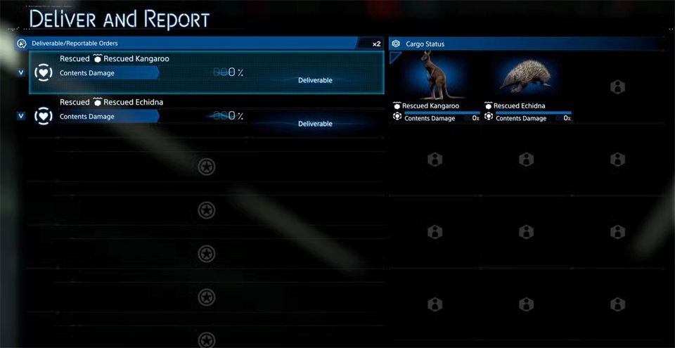 重要的是要记住:这些大型动物箱子是易碎的货物,所以运回动物收容所时必须格外小心。此外,它们只能背在山姆背上或载具中,这意味着携带它们时不能在DHV Megallan上快速旅行。