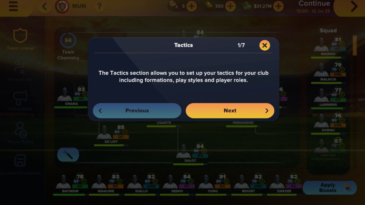 4、战术并不仅仅是选择阵型。它们决定了你的球队在每种情况下的表现。教程解释了如何调整阵型、分配比赛风格以及自定义球员角色。可以保存最多三个战术体系,并在赛季中途根据对手情况切换。例如,防守型4-2-3-1可能更安全,而4-3-3则适合在主场进攻。解锁自定义阵型后,你可以自由拖放球员,围绕你的明星球员调整阵容。