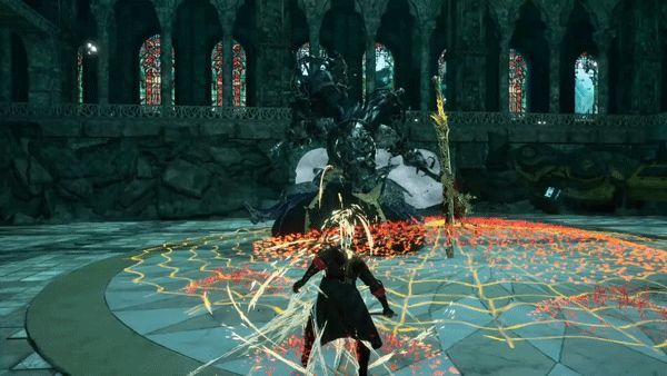 由于他的攻击速度快,你会想更多地躲避。只要有机会靠近他还是值得的,但要准备好逃离,因为他的脚步重击能把你击开,火焰扩散攻击如果刚开始被抓住,伤害会非常大。