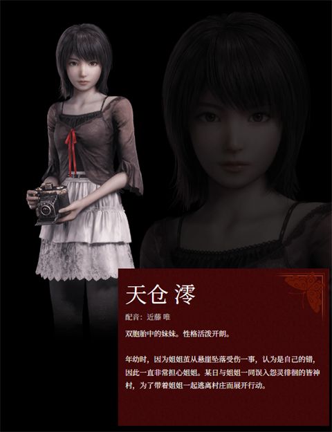 本作为“零”系列第二作——日式恐怖游戏《零 ~红蝶~》的完全重制版。在这款日式恐怖冒险游戏中,一对双胞胎姐妹误入怨灵徘徊的废村,她们需要在推进故事剧情的同时,借助能拍下超乎常理之物并封印其中的照相机——“射影机”,来对抗无数幽灵。