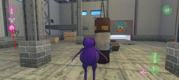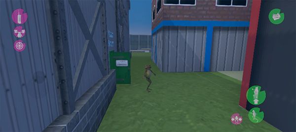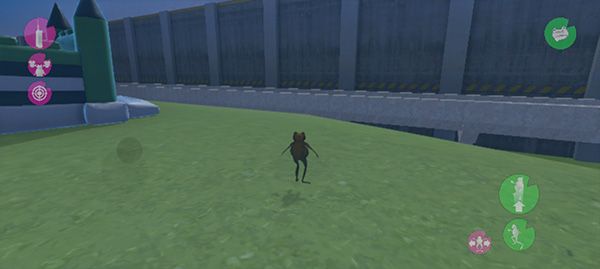 5、左下角可以滑动呼出操纵轮盘来控制青蛙移动,右下角红色按钮用来切换横着走,绿色按钮分别是站立和跳。