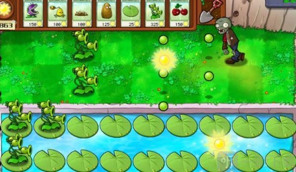5、等待一切就绪之后我们就可以正式开始我们的游戏了,开始之后我们需要尽可能种多的莲叶来在水上布置我们的植物防线。