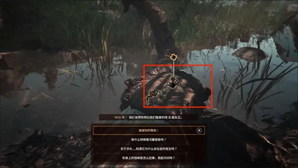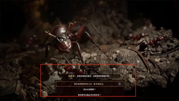 2、在树干上有一只小蚂蚁——9615号,它告诉我们女王塔尤在等待主角的觐见,在9615号这里我们还可以得到另一个消息就是塔尤岗即将遭受洪水,紧接着继续往前就到了塔尤女王的巢穴。