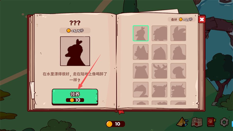 2、在图鉴页面中,消耗资源解锁并领养你心仪的小动物伙伴。