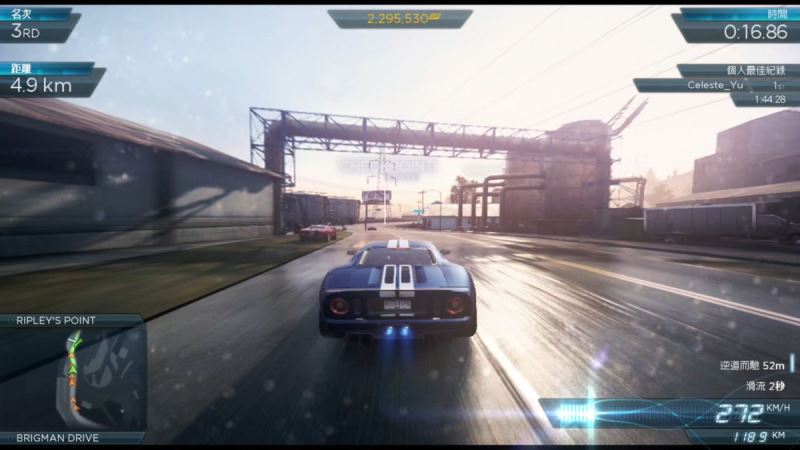 5、经过充分练习,精准转向和恣意漂移不再是难事。补充一点,此代中进行漂移比极品飞车14还容易实现,只要方法正确。