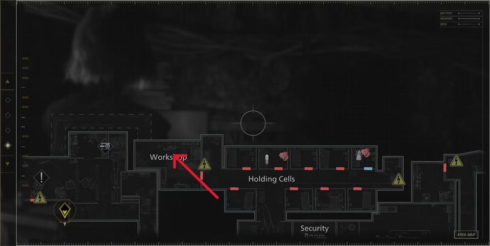 8、工作坊: 你可以在工作坊找到下一尊浣熊先生雕像。拿起储物室末端的接头塞,带到门旁的插槽。插入它以启动门,进入工作坊,斩杀对面桌上的浣熊先生雕像。