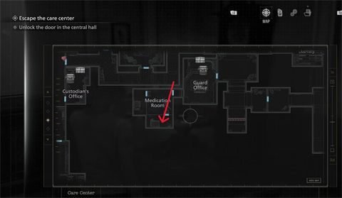 5、药物室:获得身份证手环(3级)后,前往被关押的盲女所在地,打开左侧空牢房。床尾靠墙的另一尊浣熊先生雕像。