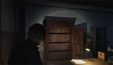 进入档案室,用腕带解锁后面的门。在这个侧壁橱里,你会发现一个变形的橱柜,可以打开Leon,右后角的桌子上放着第二个臀袋。