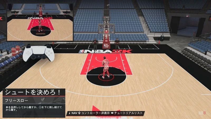 罚球有两种类型:与普通投篮相同:按住□并释放它,以及击倒 R 摇杆然后释放它。
