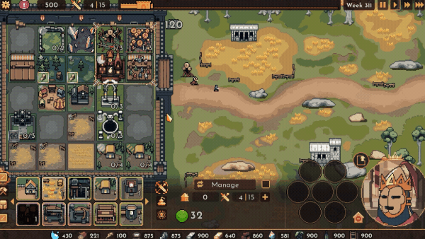 首先是资源获取的方面,游戏内所有的建筑都只能在一个四乘四见方的狭小区域内进行搭建。但在建设完成后,这些刁民却不能直接投入生产或者训练。只有处于国王监视的区域才能有所产出,所以在游戏的过程中我们需要不断的改变监视的区域,切换执行生产的建筑才能满足国王发展的需要。