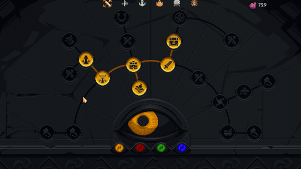 在战斗的方面,王之凝视选择了由玩家自主选择的方式来决定我们即将面对的战斗。每次经过一个小头目的波次,游戏会提供不同难度和奖励的关卡来让玩家进行挑选。这些奖励包括提供新的生产或者军事建筑,提升现有的建筑等级,获取用于购买神器的金币,或是直接获得法术或佣兵单位。